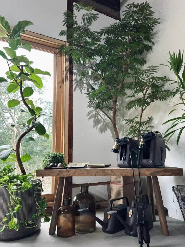 元市営住宅である古民家平屋の当時の味わいを活かしながらリノベーションした店内に、観葉植物・多肉植物・生花やドライフラワーが並びます。横須賀の山並みが見渡せる開けた庭には、ガーデンやベランダ植栽におすすめの庭木・草花・オージープランツ、またガーデン用の耐寒性アガベも取り揃えております。